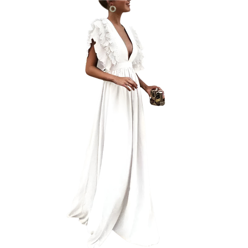لويز | فستان طويل أنيق مع كشكش وفتحة صدر عميقة