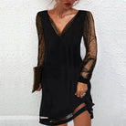 This mid-length dress is charming with its elegant V-neck and delicately transparent sleeves with refined finishes. Its fluid cut enhances the silhouette while offering pleasant comfort. Ideal for events or dressed outings, it combines style and lightness.