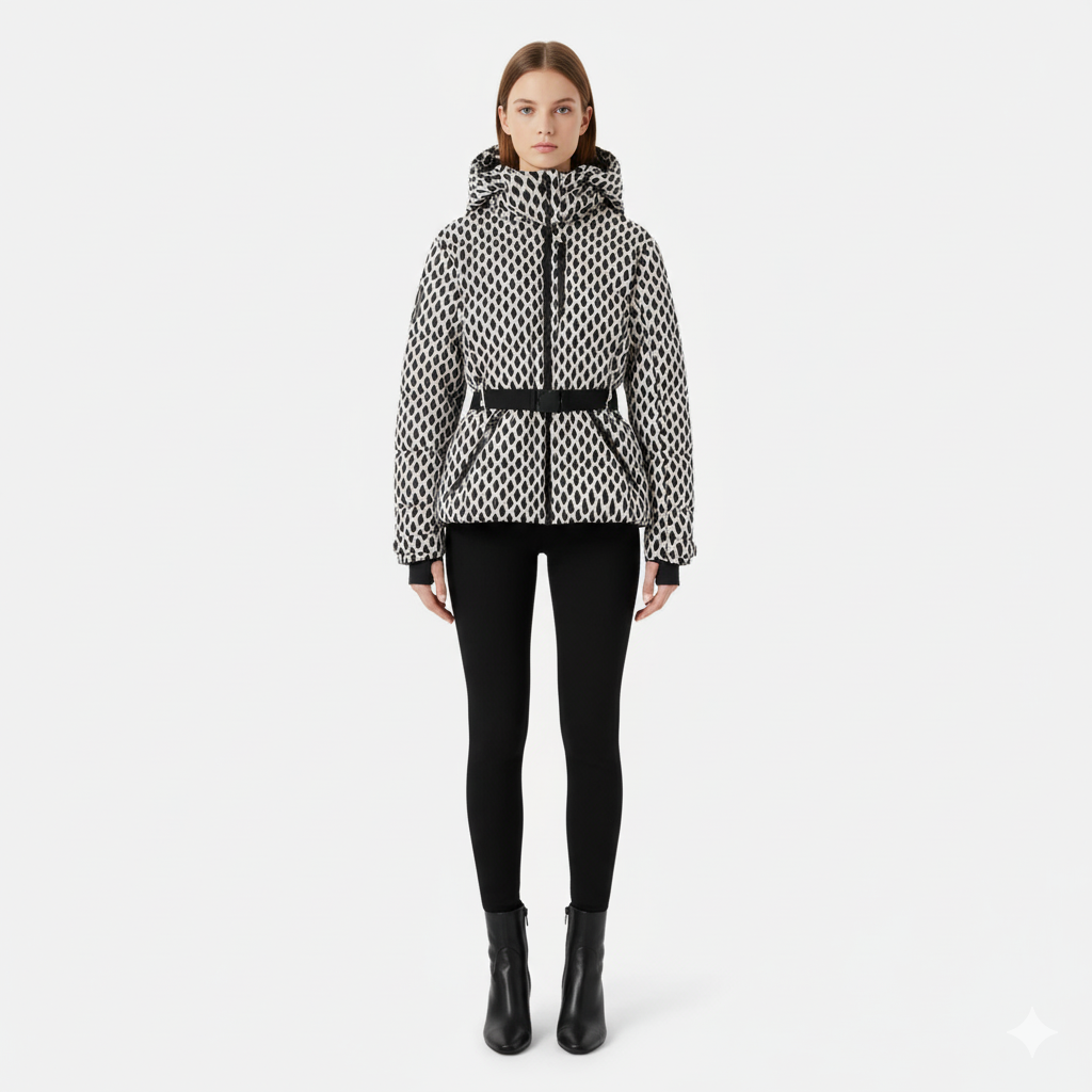 Farah | Dámská zimní bunda s páskem — Grafická elegance & Moderní teplo