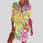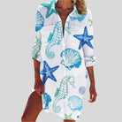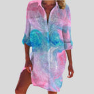 Denne knap-up sommerkjole med lange ærmer tilbyder en flydende og komfortabel pasform. Dens alsidige design passer til forskellige anledninger. Fås i flere farver og størrelser for at passe til alle.