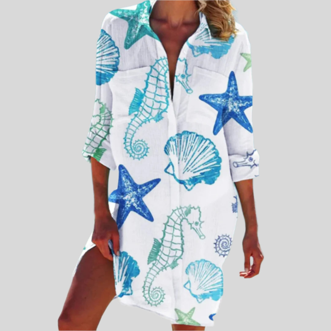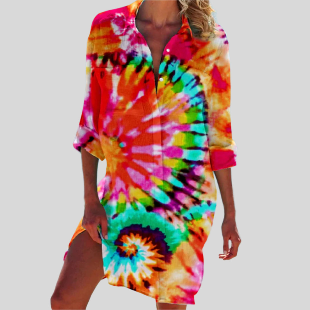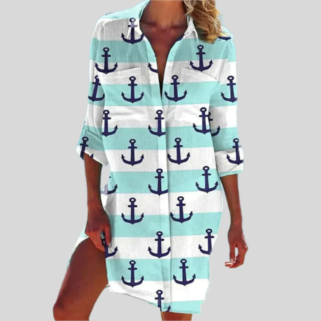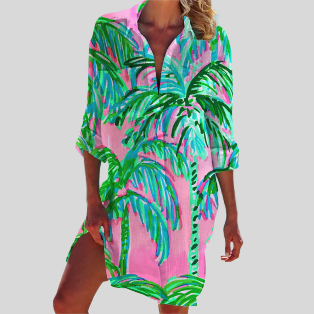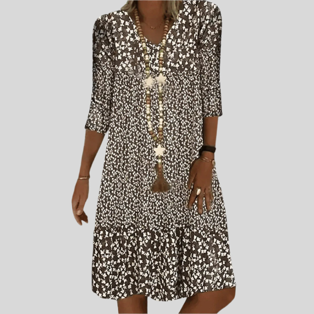 Loriane | Chic Trykt Kjole med Lange Ærmer