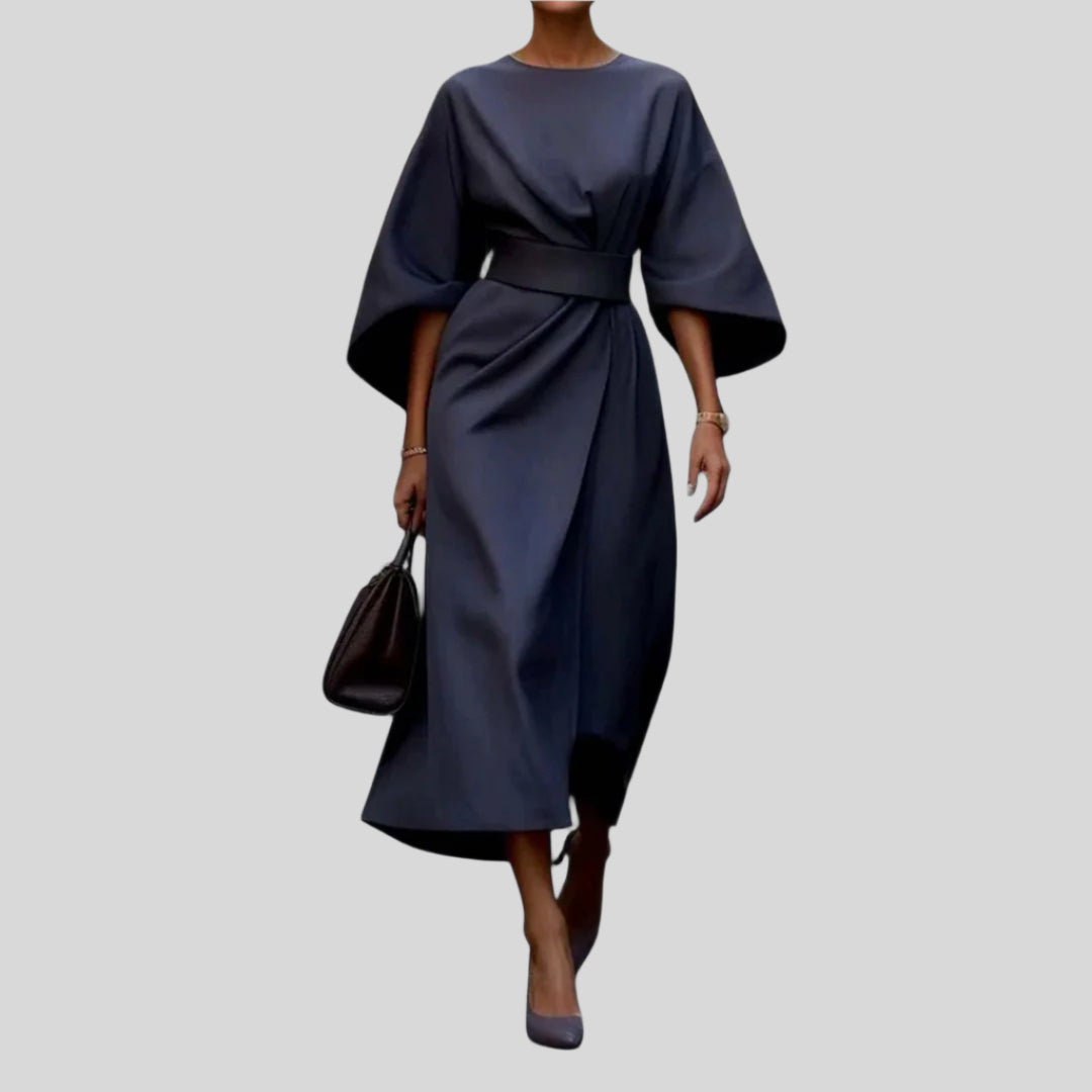Rania | Luksuriøs Kjole med V-Udskæring og Lange Ærmer