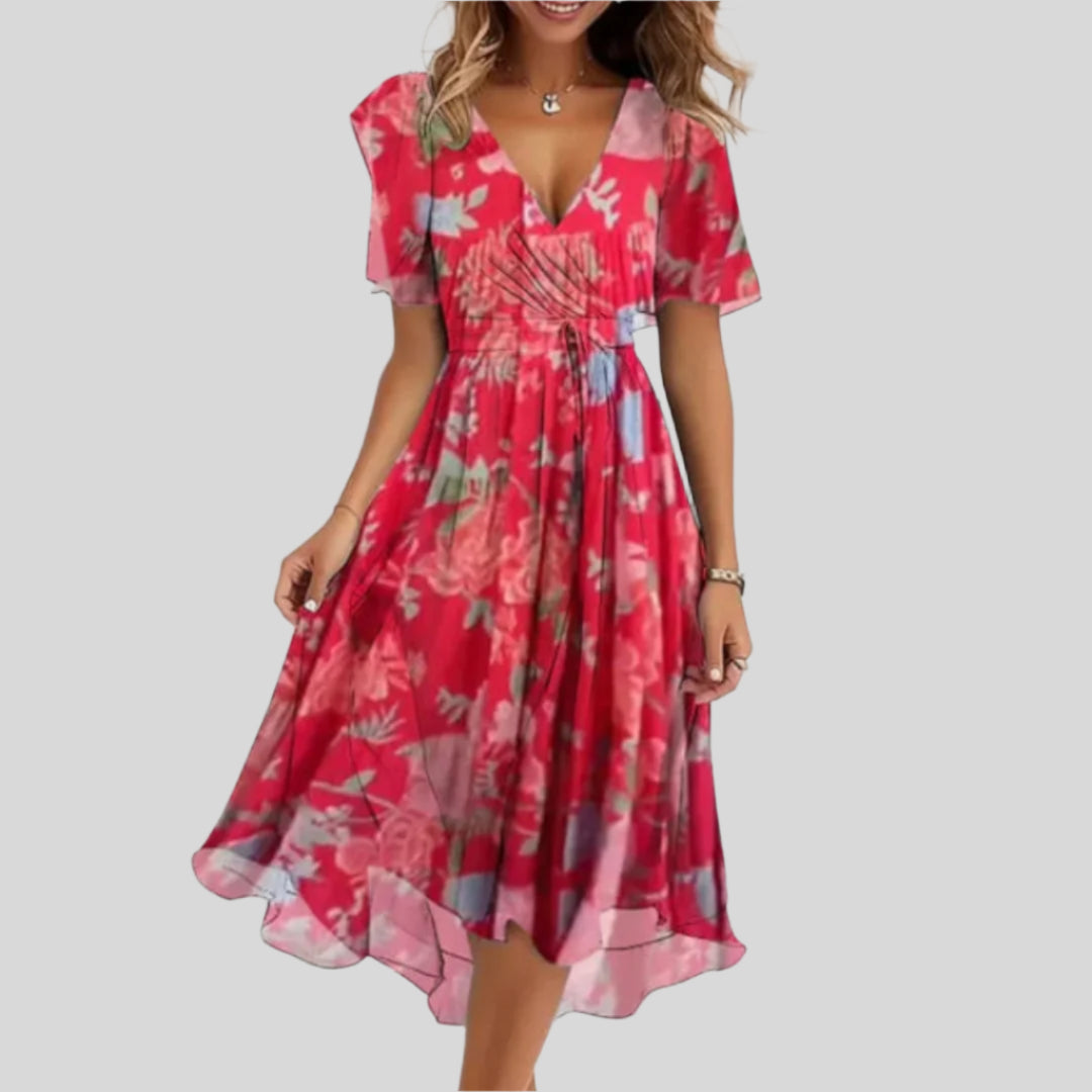 Elodie | Flydende Kjole Med Blomsterprint Og V-Udskæring