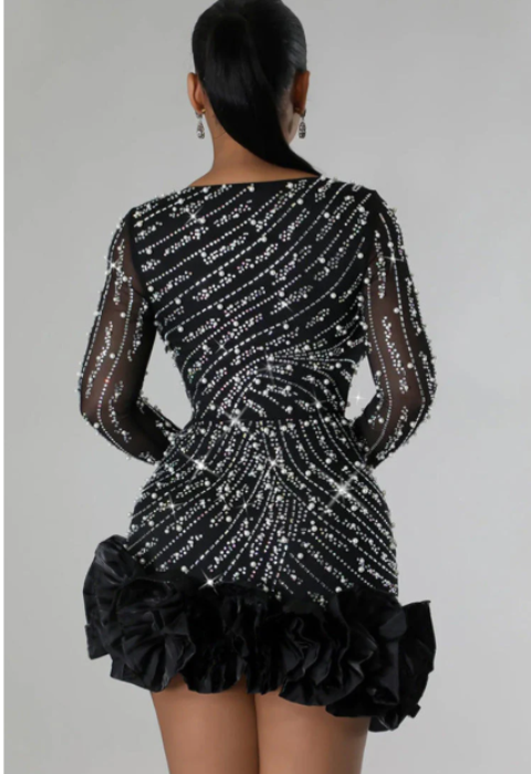 Kélia | Mini tætsiddende kjole med krystalornamenter
