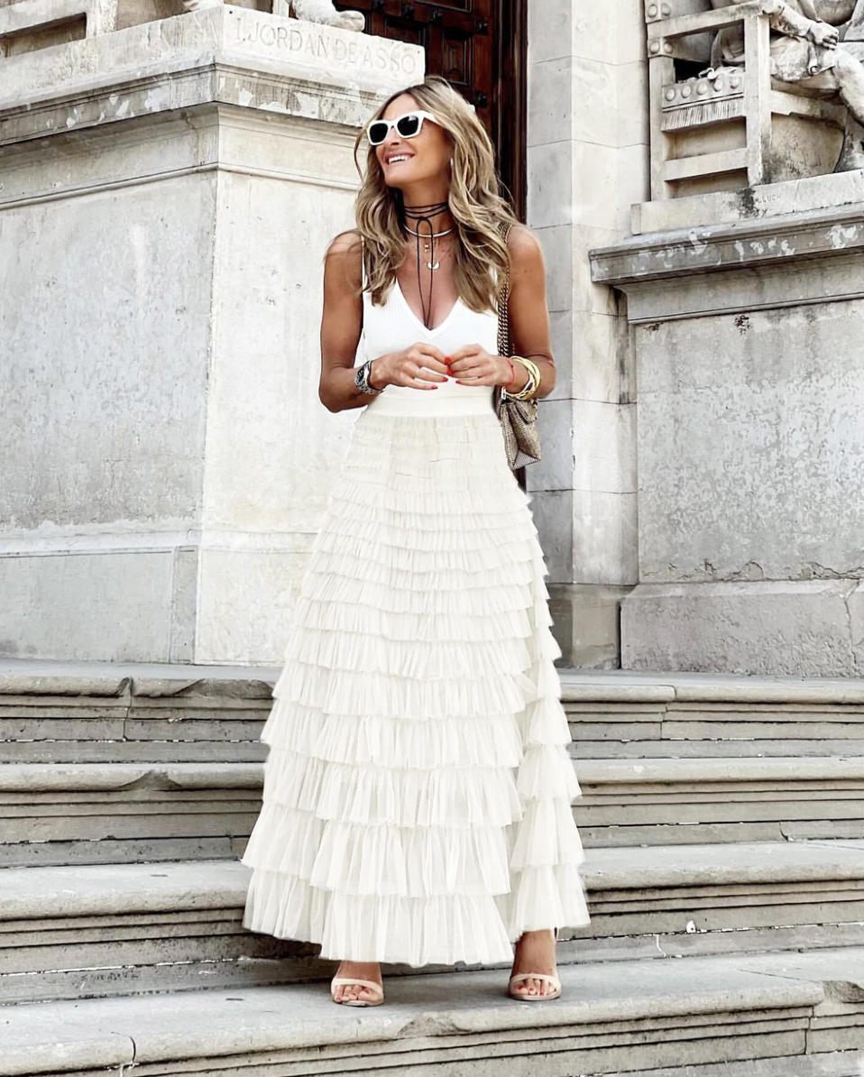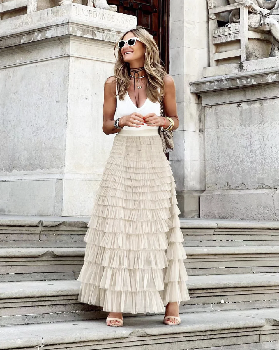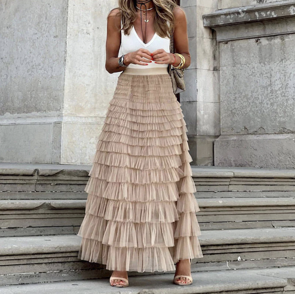 Elise|Romantisk Nederdel Med Volanger Til Elegant Silhuet