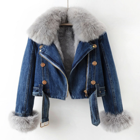 Diese kurze Jacke vereint modernen Stil und Komfort für die kalte Jahreszeit. Ihr flauschiger Kragen und die taillierte Passform verleihen jedem Ihrer Outfits eine raffinierte Note. Perfekt für kühle Tage, bietet sie angenehme Wärme, ohne Ihre Eleganz zu beeinträchtigen.