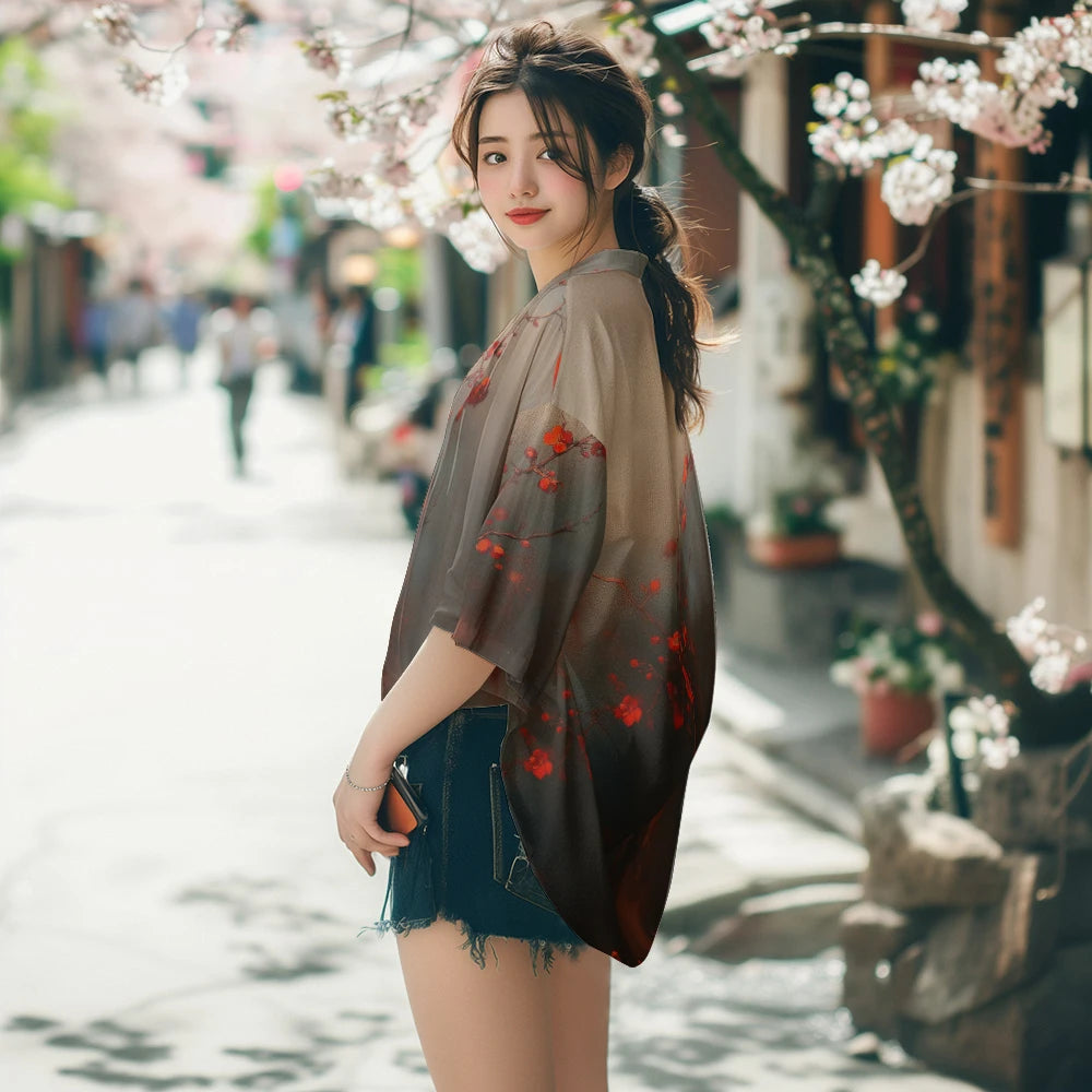 Κριστίν | Κιμονό Μπουφάν με Λουλούδια – Ελαφρύ Στυλ και Λουλουδάτο Σχέδιο