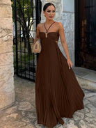 Λουκία | Μακριά Φόρεμα Μπούστο Πλισέ Πίσω Σταυρωτό Χωρίς Μανίκια – Κομψότητα Και Διακριτικότητα