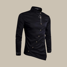 Esta camisa de manga larga presenta un cierre de botones diagonal distintivo. Su corte clásico asegura un ajuste cómodo y elegante. Perfecta para ocasiones formales o informales.