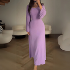 Cette robe longue à manches longues offre une silhouette féminine et flatteuse. Disponible en plusieurs couleurs, elle s'adapte à toutes les occasions. Son design intemporel garantit une élégance sans effort.