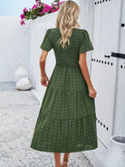 Cette robe bohème chic à manches courtes est idéale pour un look à la fois décontracté et élégant. Sa taille smockée met en valeur la silhouette, tandis que sa coupe fluide assure un confort optimal. Parfaite pour l'été, les sorties ou les journées ensoleillées.
