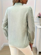 Ez a blúz egy időtlen kockás mintát mutat be, amelyet elegáns masni részlet emel ki. Hosszú ujjai miatt minden évszakra ideális. Könnyen kombinálható, alkalmas mind a hétköznapi, mind a munkahelyi eseményekhez.