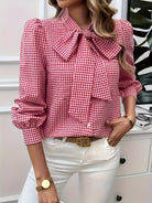 Cézanne | Elegáns Kockás Blúz és Lavalliére Csomó