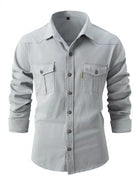 Ez a hosszú ujjú ing kontrasztos árnyalatú denim anyagból készült. Klasszikus, lehajtott gallérral és középső gombolással rendelkezik, amely strukturált és laza stílust kölcsönöz. A mellkasi zsebek funkcionális dimenziót adnak hozzá. Tiszta szabása különböző alkalmakra alkalmas, a mindennapoktól a elegánsabb rendezvényekig.