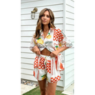 Ez a blúz és rövidnadrág szett megtestesíti a nyaralás szellemét a könnyedséggel és stílussal. Laza szabása és színes mintái tökéletes öltözetet biztosítanak a nyárra. Könnyen felvehető, kényelmes és divatos, mind a strandon, mind a séták során elkísér.