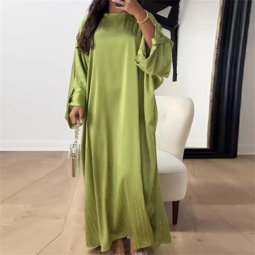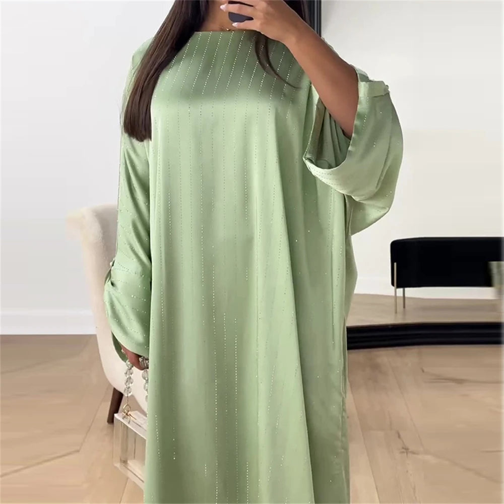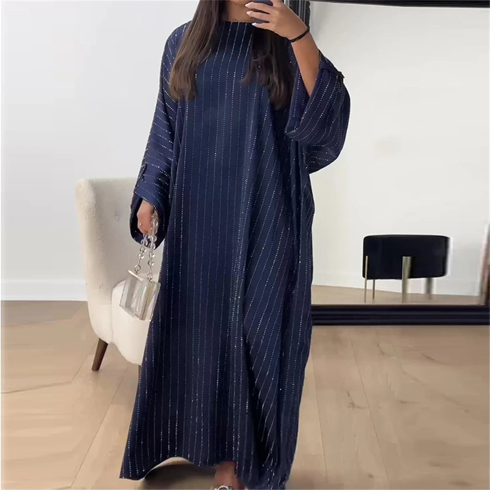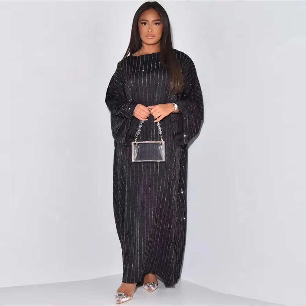 Ez az estélyi abaya egy folyékony vonalvezetést elegáns csíkos dizájnnal ötvöz. Bő szabása biztosítja a teljes kényelmet, míg finom részletei diszkréten emelik ki megjelenését.
