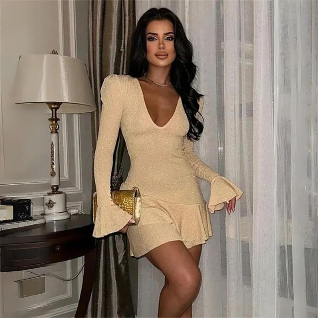 PERCHÉ SCEGLIERE IL MINI ABITO SCINTILLANTE CON MANICHE A CAMPANA ?