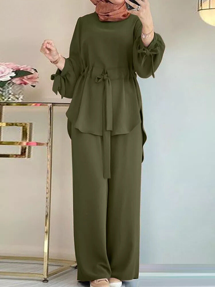 Versatil și rafinat, acest set din două piese îmbină confortul cu stilul. Combinat dintr-o tunică lungă și o pereche de pantaloni fluidi, este potrivit atât pentru ieșiri elegante, cât și pentru momentele de zi cu zi.