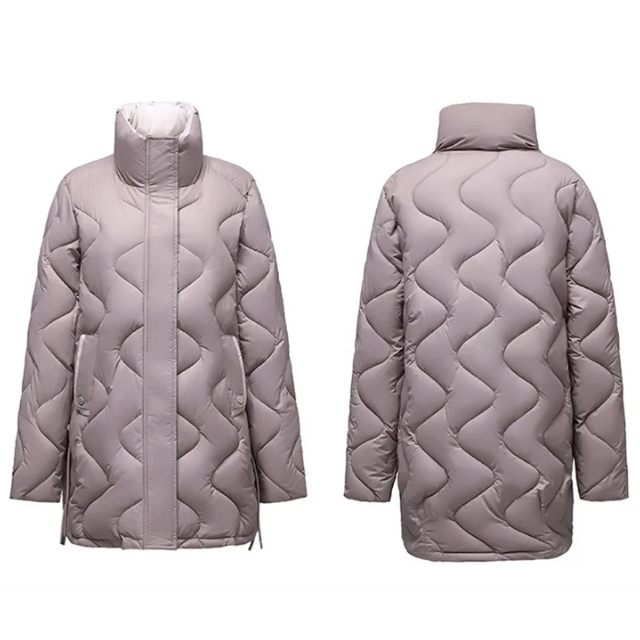 Acest model îmbină confortul și rafinamentul pentru a înfrunta sezonul rece cu stil. Croiala sa modernă și gulerul înalt asigură un aspect elegant, protejând eficient de vânt. Ușoară, dar călduroasă, această jachetă devine un element esențial al garderobei de iarnă, la fel de practică pe cât este estetică.