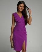 Denna midiklänning charmar med sin smickrande V-ringning och diskreta slits, som ger en touch av raffinerad elegans. Dess balanserade snitt framhäver silhuetten samtidigt som den garanterar optimal komfort. Perfekt för evenemang och kvällar, den förenar stil och bekvämlighet på ett naturligt sätt.