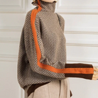 Denna tröja framhäver en strukturerad linje tack vare sitt arbetade zigzag-mönster. De kontrasterande banden längs ärmarna ger en tydlig visuell touch utan att bli överdriven. Dess något lösa passform gör det enkelt att sätta ihop vardags- eller mer uppklädda outfits.